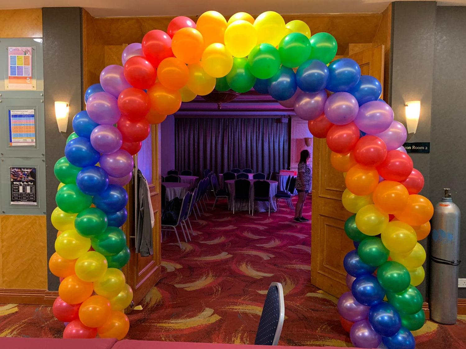 Balloon arches are generally made with air-filled balloons rather than helium as they hold their shape better and last longer.